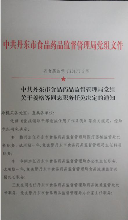 中共www.48-365365.com党组关于姜格等同志职务任免决定的通知