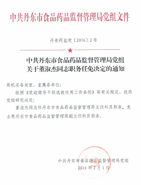 中共www.48-365365.com党组关于董淑杰同志职务任免决定的通知
