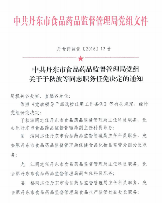 中共www.48-365365.com党组关于于秋波同志职务任免决定的通知