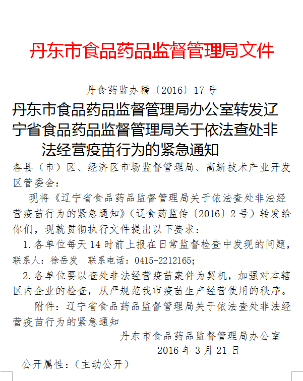 关于依法查处非法经营疫苗行为的紧急通知