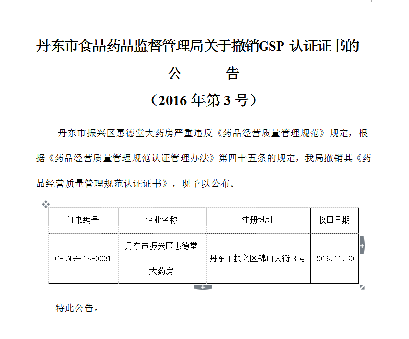 www.48-365365.com关于撤销GSP认证证书的公告(2016年第3号)